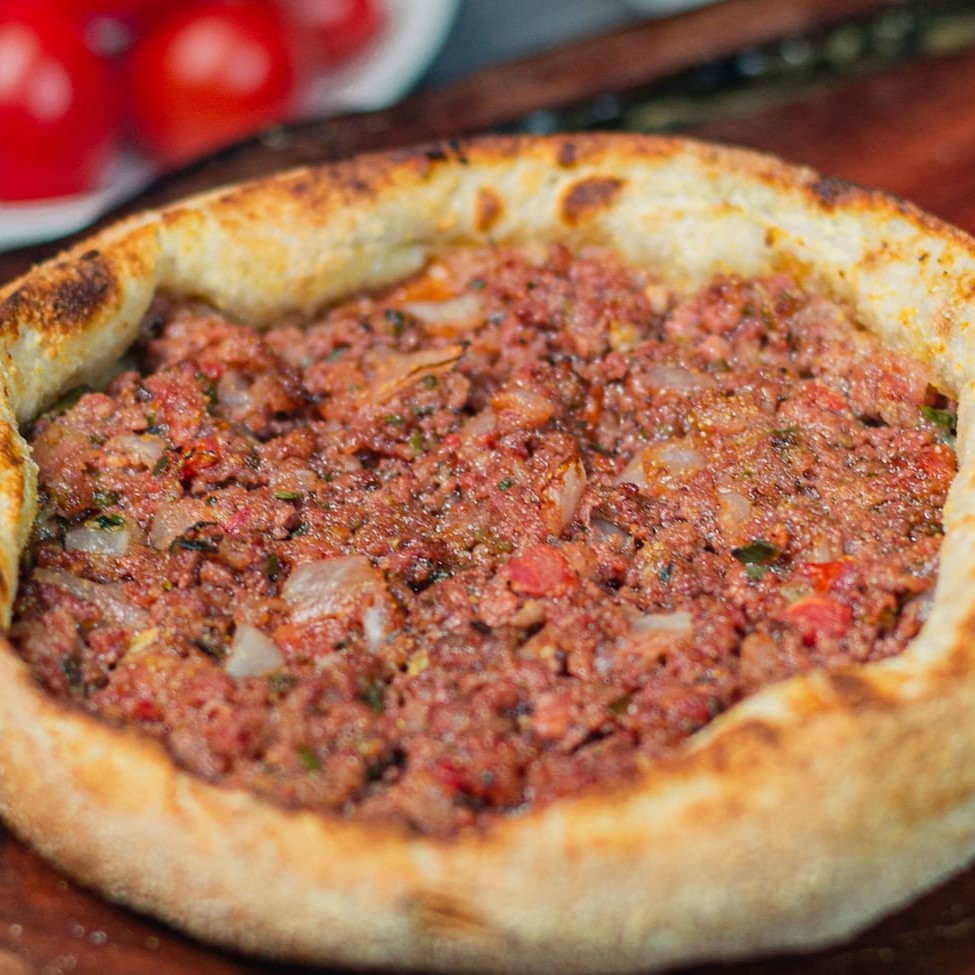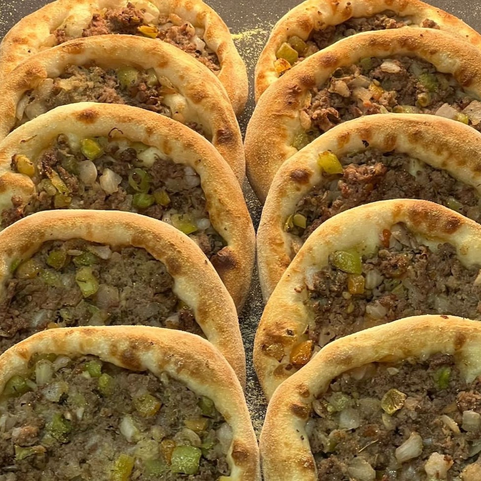 Esfiha de carne: deliciosa massa assada, recheada com carne moída temperada com cebola, tomate, orégano e tahine. Uma mistura de sabores, que vai deixar seus sentidos em êxtase!