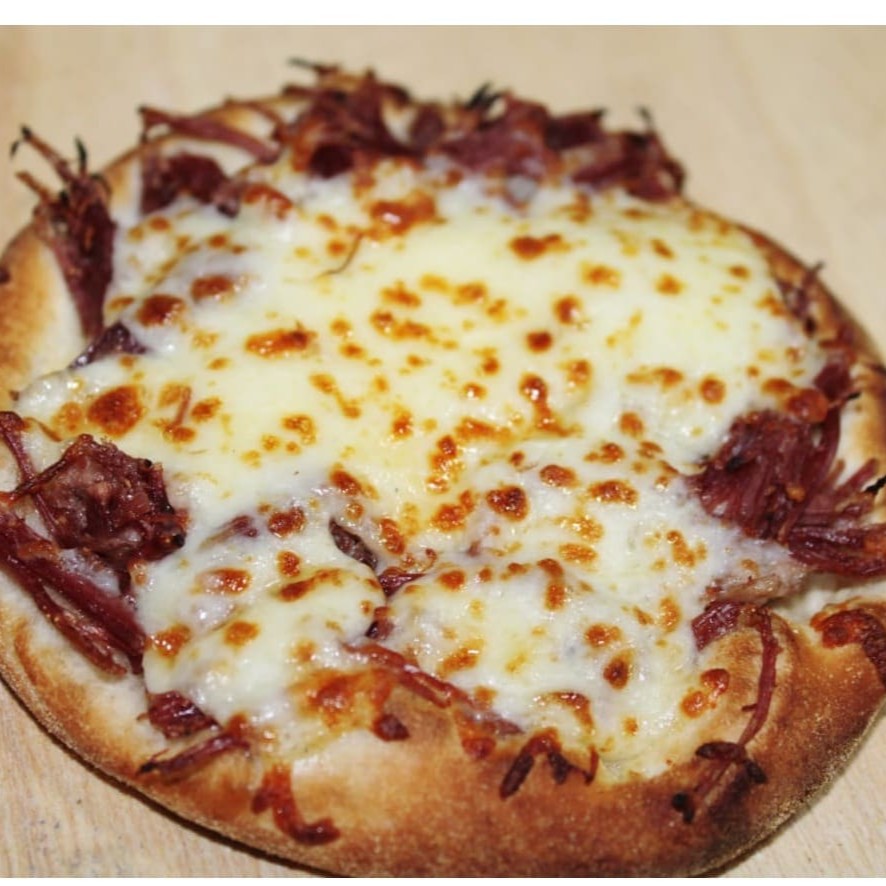 Carne seca cozida e desfiada, coberta com Muçarela ou Catupiry Original!