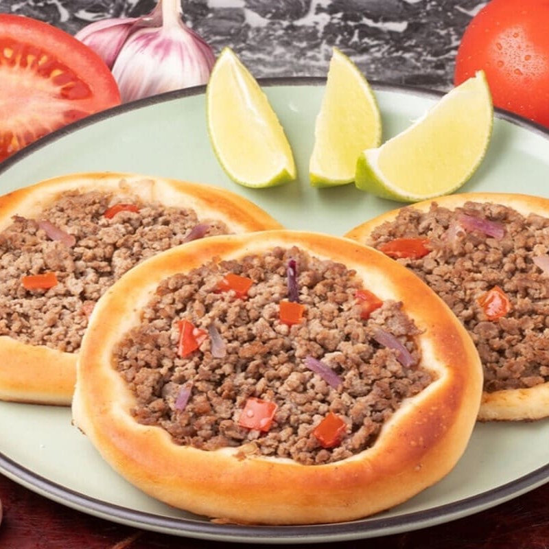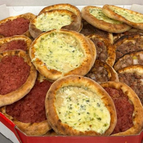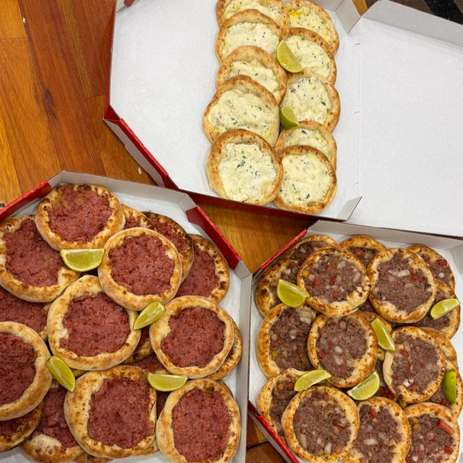10 esfihas de carne, 10 esfihas de calabresa e 10 esfihas de queijo fresco
