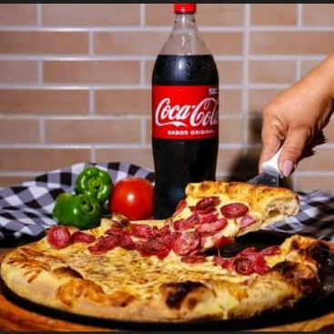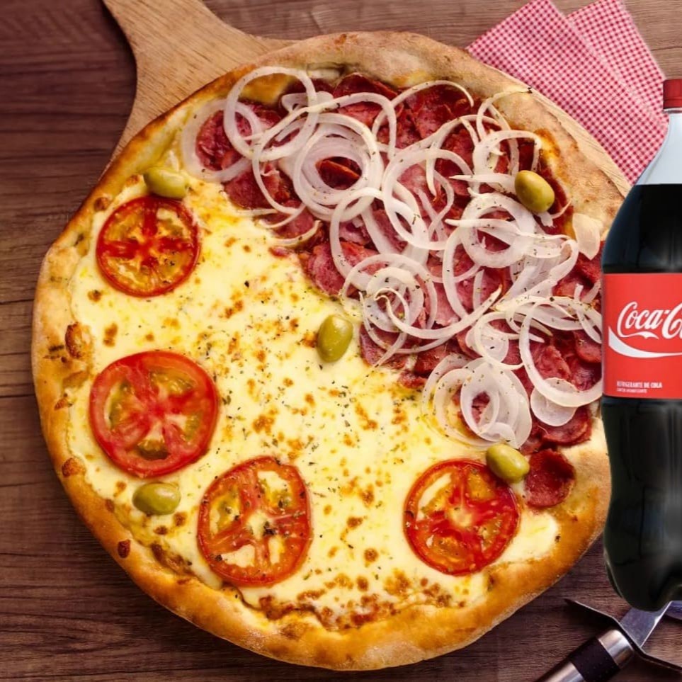 Pizza Grande 1 2 Calabresa 1 2 Mussarela + Coca Cola 2l