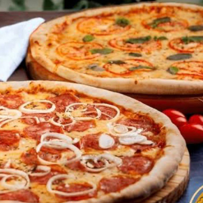 1 PIZZA MEIA MEIA, 1 PIZZA FRANGO C/ CATUPIRY