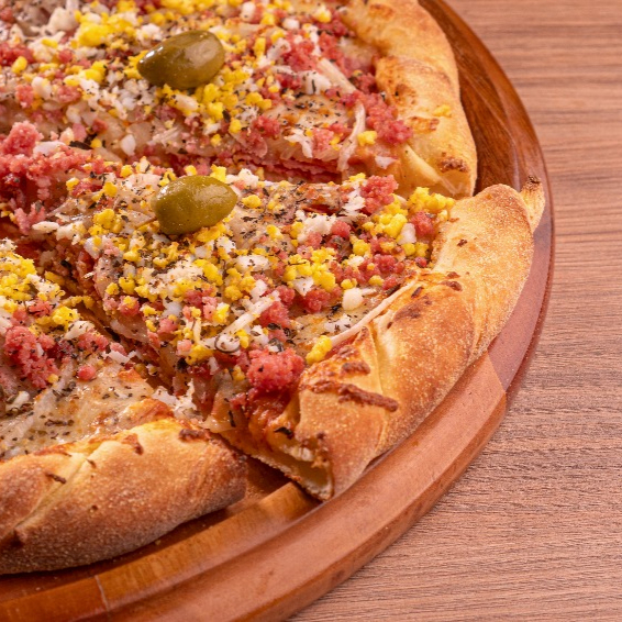 Frango desfiado temperado com alho, azeite e especiarias, milho verde opcionais de (Mussarela ou Catupiry)