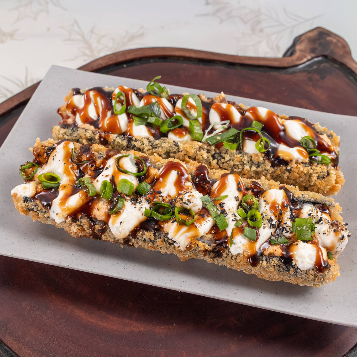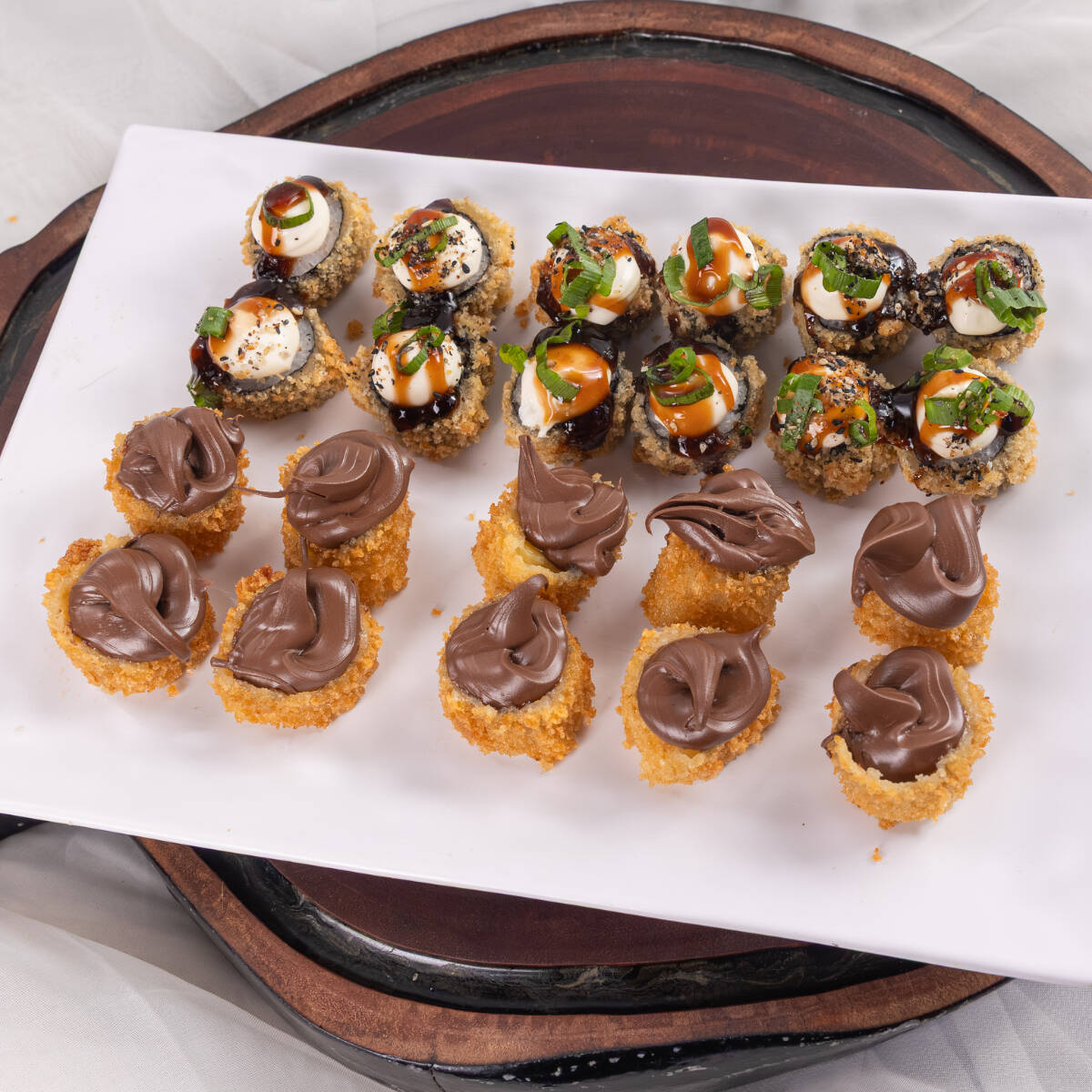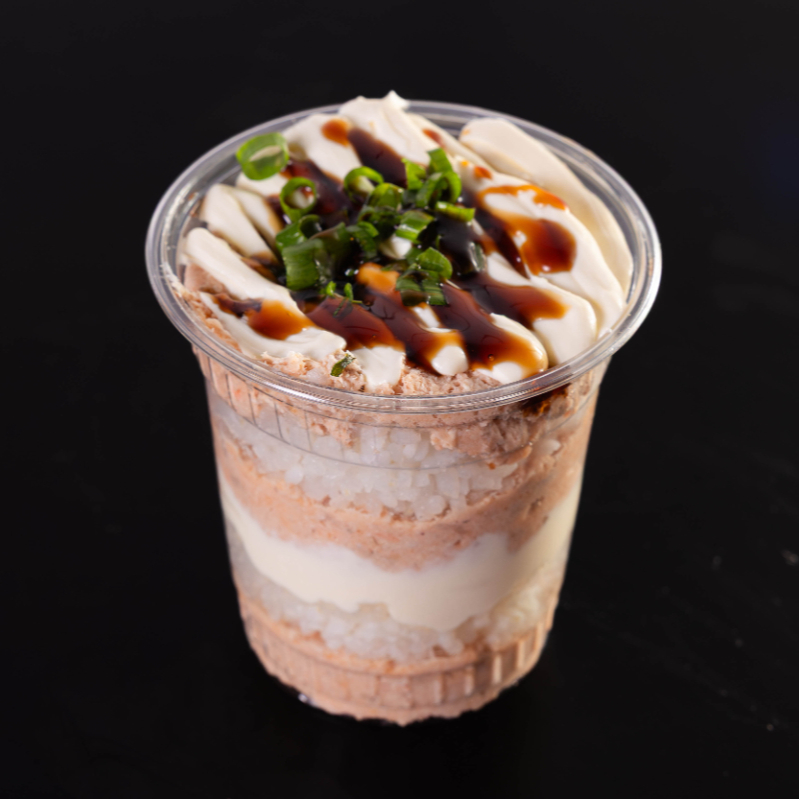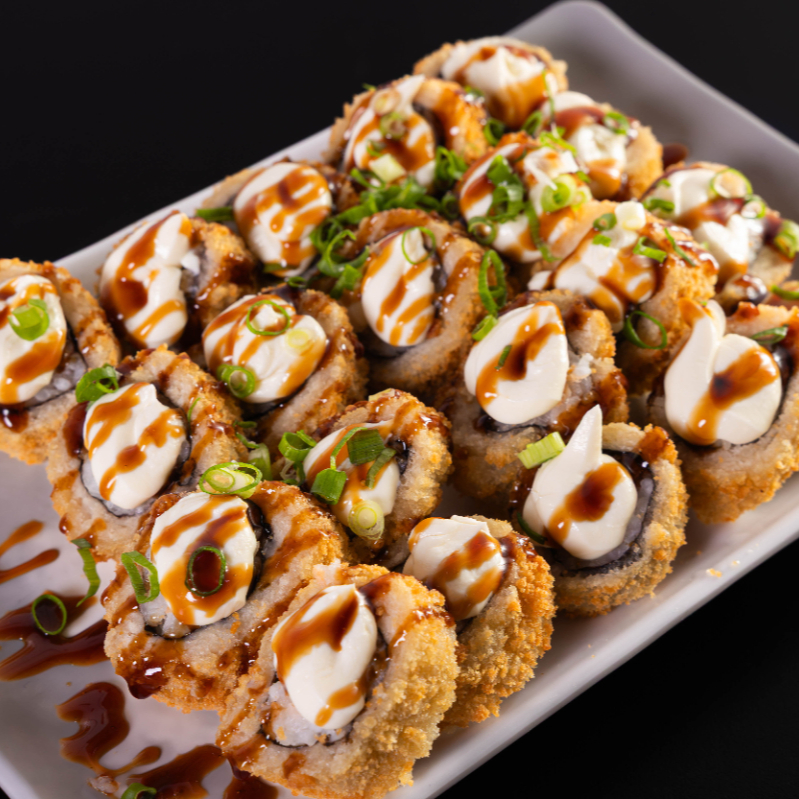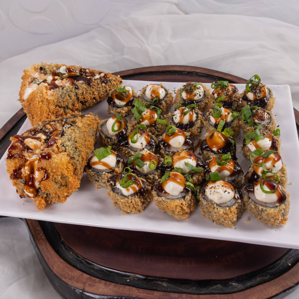 ARROZ JAPONES(SHARI)GENEROSA PORÇÃO DE SÃO CRU, BORRDA DE CREAM CHESSE E CEBOLINHA FRESCA