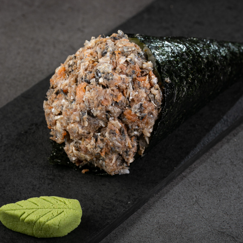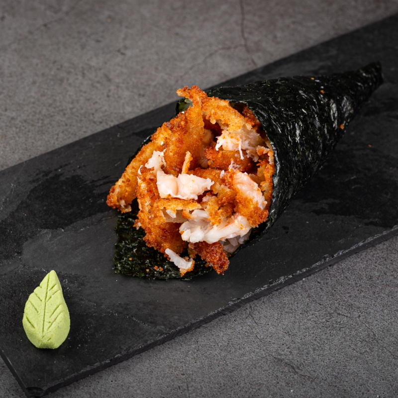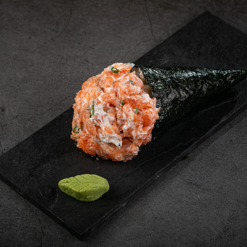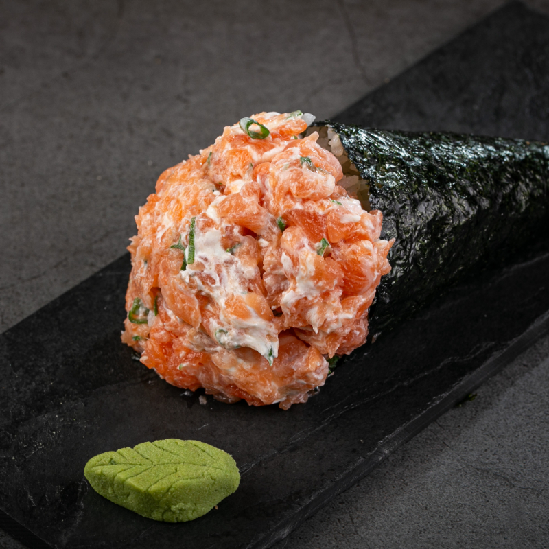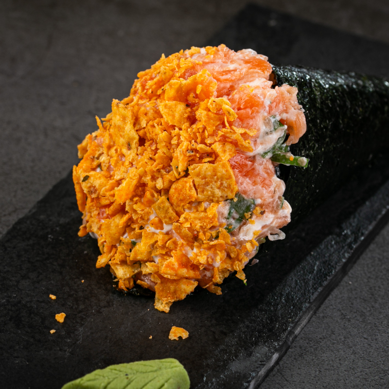 1 temaki de salmão grelhado empanado, 4 hot couve, 4 hot cream cheese,4 hot batata cryspe 4 niguiri skin ,4 uramaki grelhado com cryspe batata e 4 uramaki skin com couve