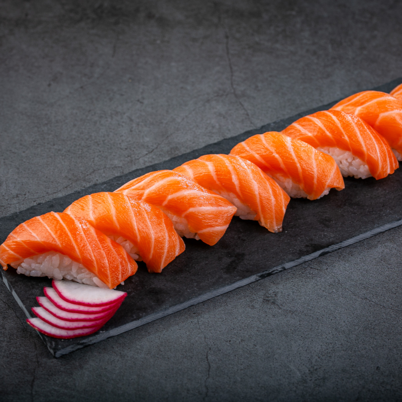 (6 niguiris de salmão 4 uramakis de salmão 2 hossomakis de salmão sem alteração)