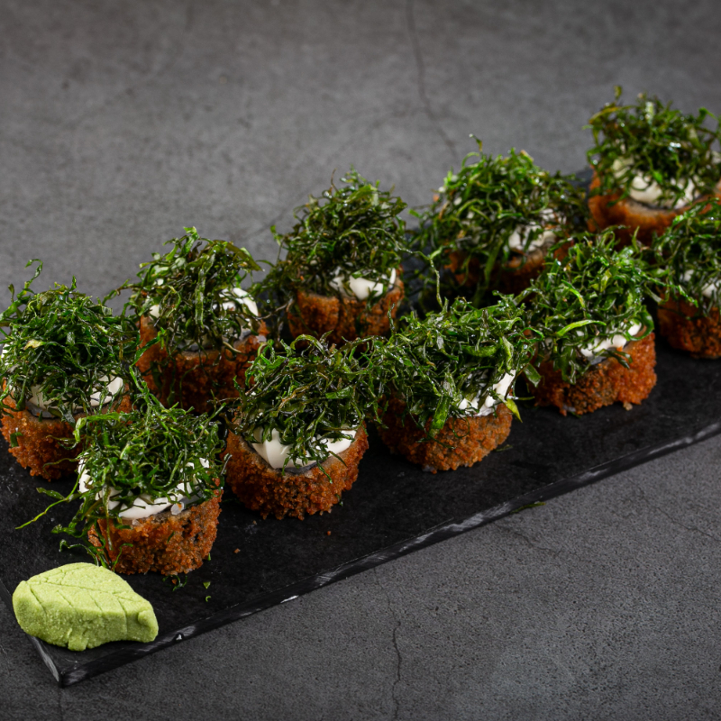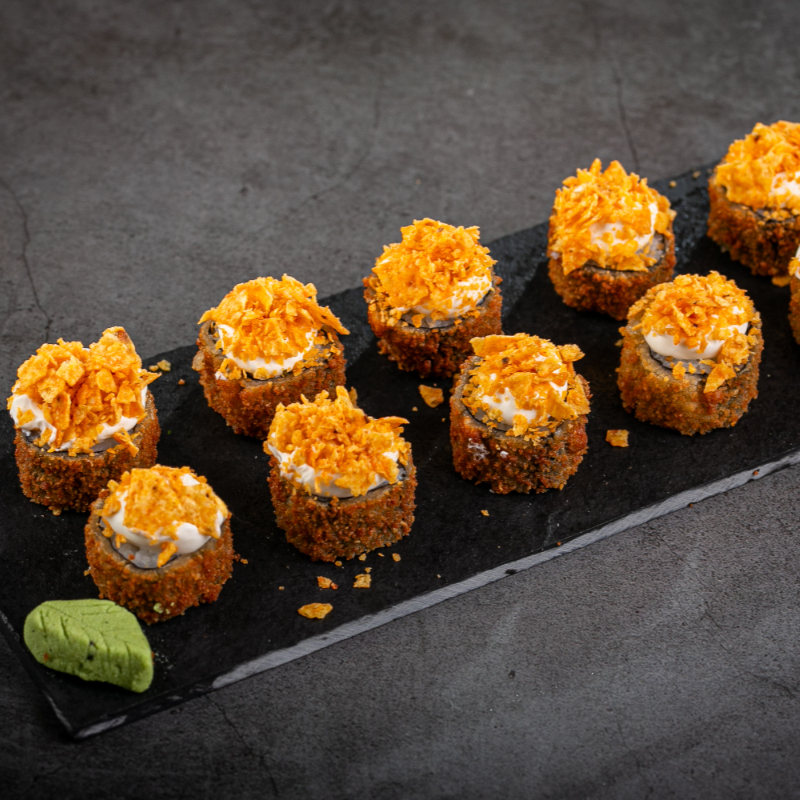8 unidades de uramakis camarão empanados com cream cheese