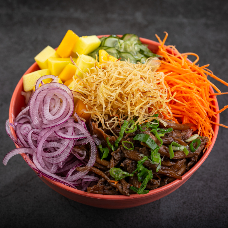 Shimeji,cebola roxa,cenoura,sunomono,manga,batata doce crispe