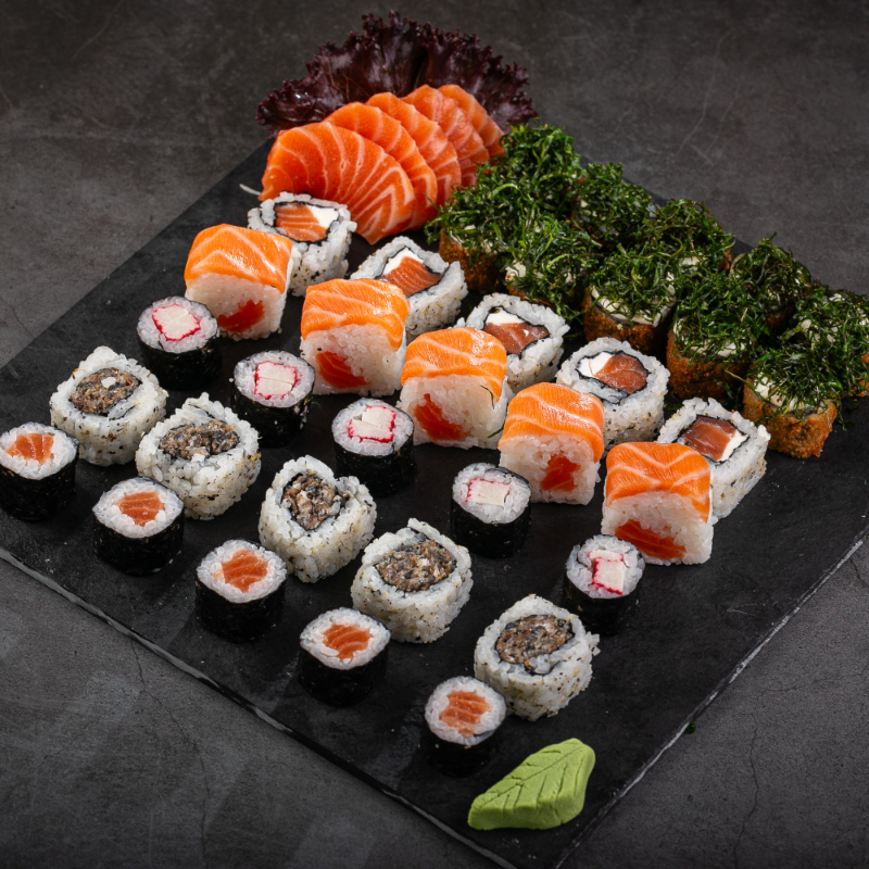 (5 Niguiri de salmão,5 dyo de salmão,5 uramaki de salmão,5 uramaki de skin,5 shakemaki,5 kani maki e 5 Hot couve Sem alterações!!!)