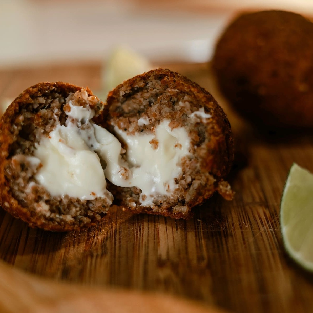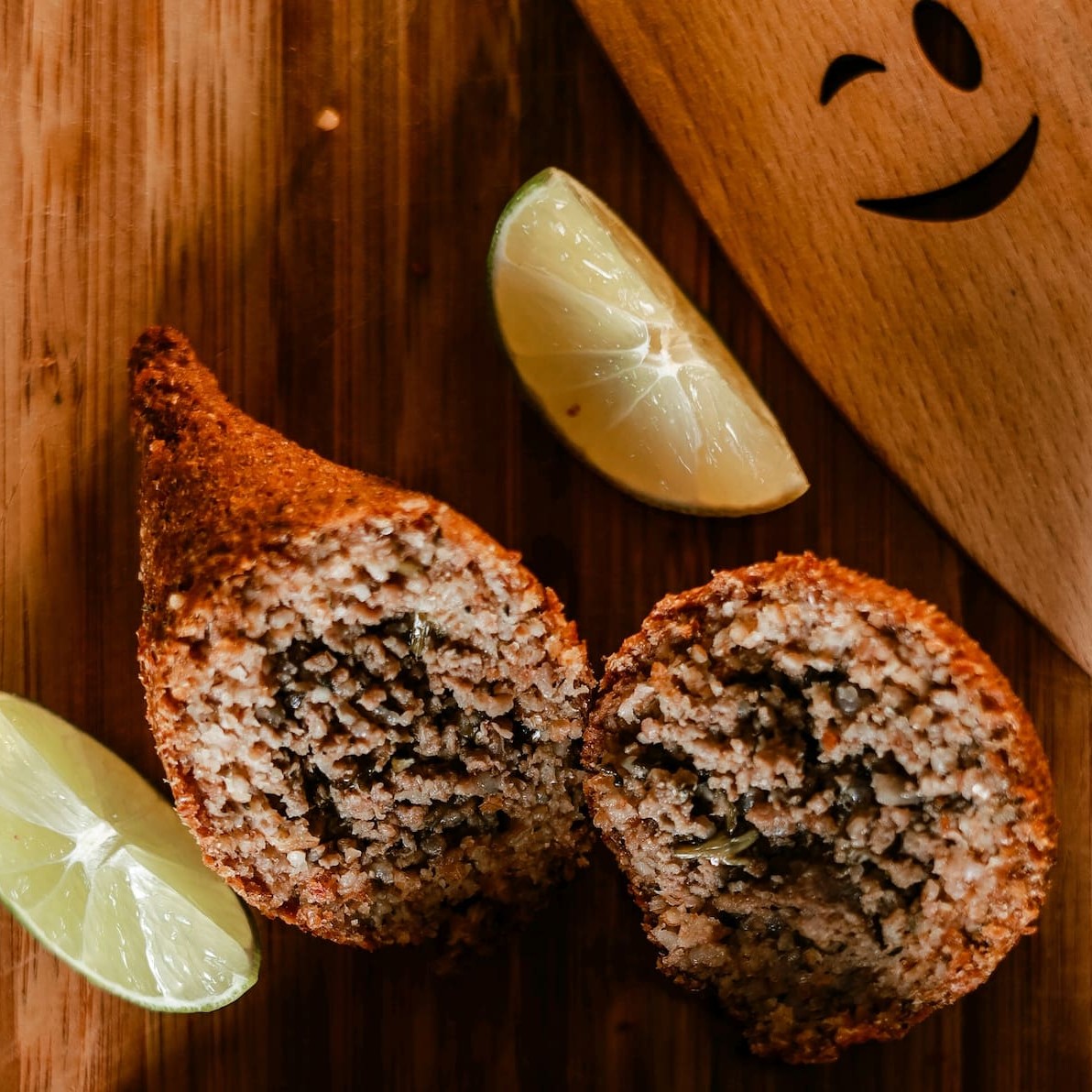 Kibe frito crocante por fora e macio por dentro, feito com temperos caseiros e ingredientes selecionados. Um salgado clássico, cheio de sabor e tradição em cada mordida!