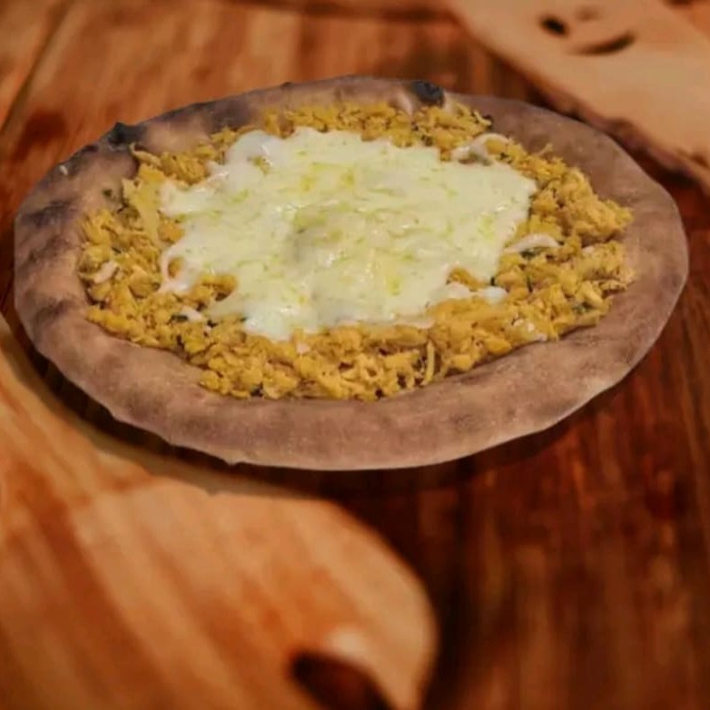 Esfiha aberta recheada com frango suculento e coberta com provolone derretido, trazendo um toque levemente defumado e cheio de personalidade! Serve 1 pessoa