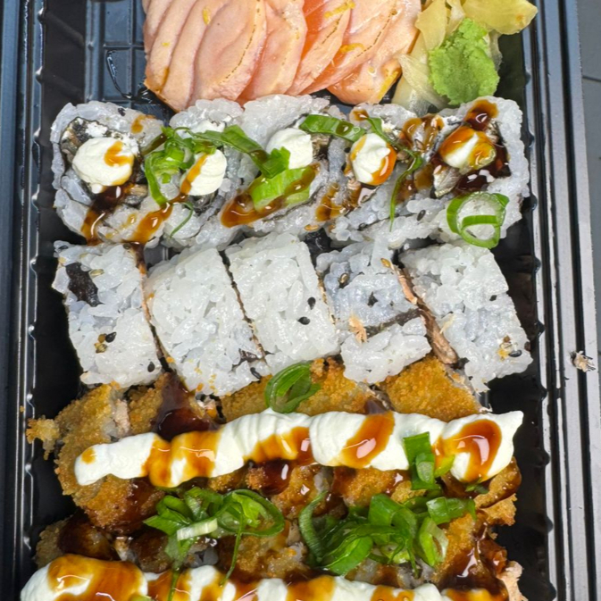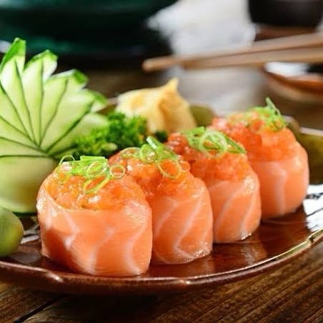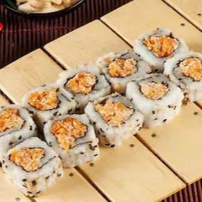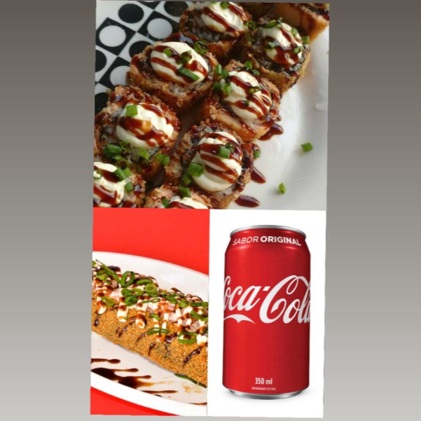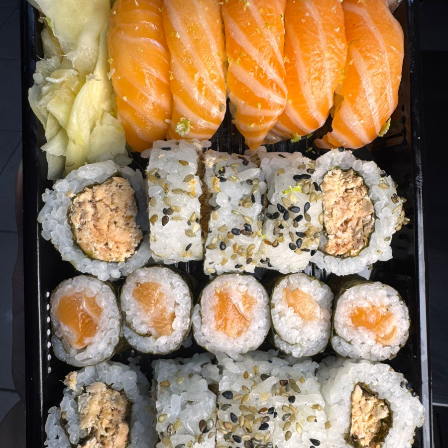5 sashimi maçaricado, 10 hot holl, 5 uramaki grelhado, 5 uramaki skin 1 temaki grelhado