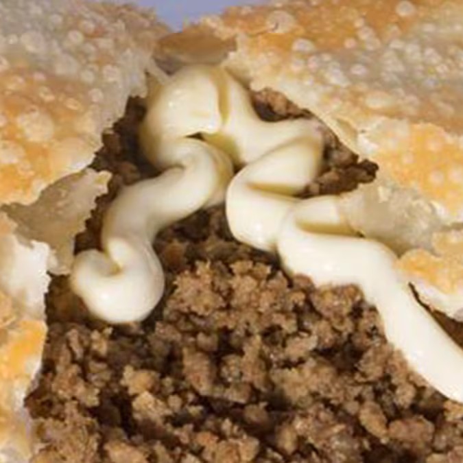 Nossa suculenta Carne Moída, queijo mussarela e molho de tomate.