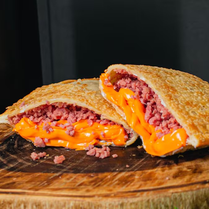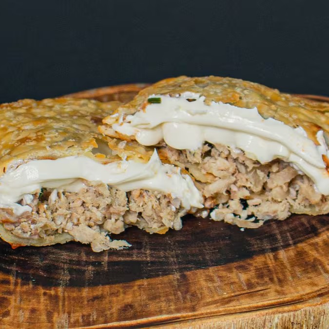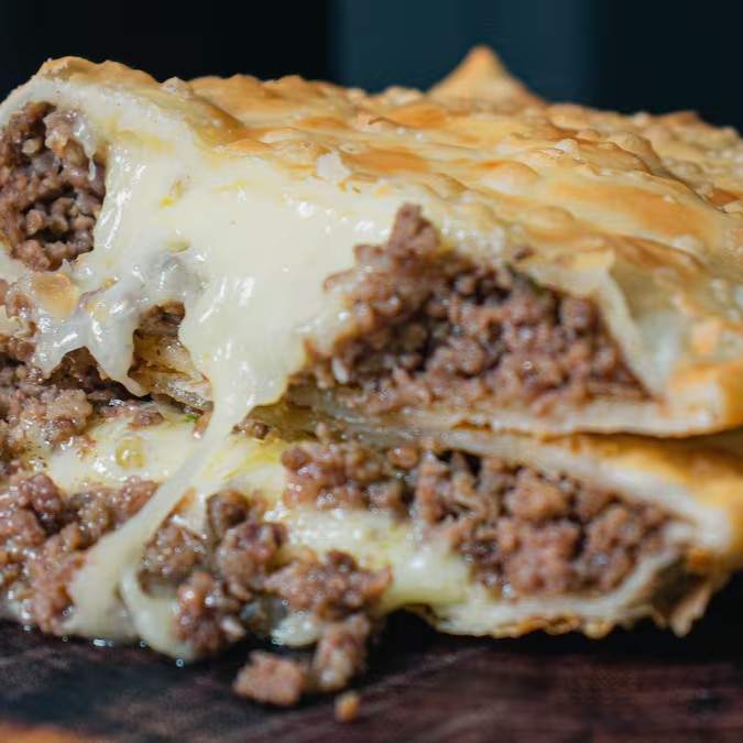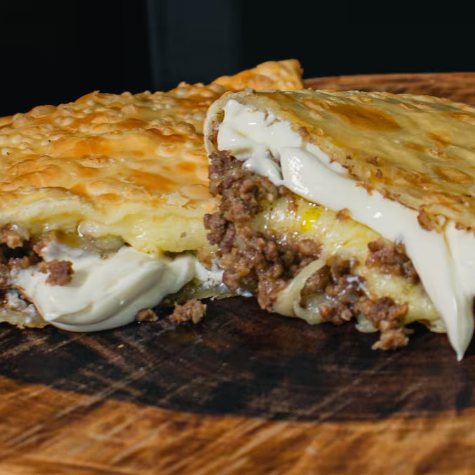 Nossa suculenta Carne Moída com queijo mussarela e queijo Catupiry.