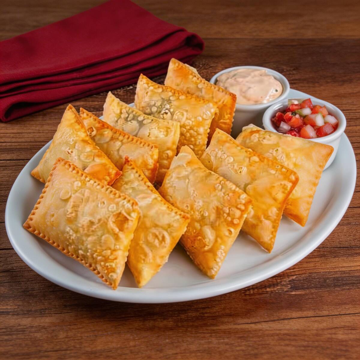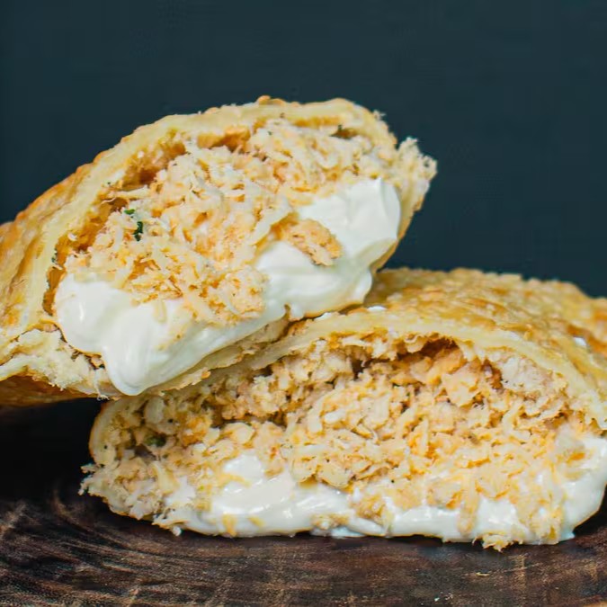 Uma deliciosa combinação do nosso frango com queijo, catupiry e batata palha em uma massa de 20x10cm feito e frito na hora.