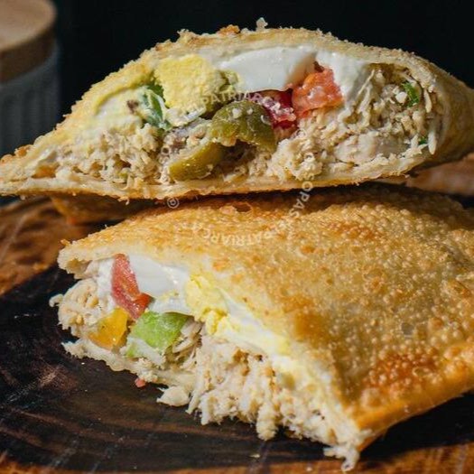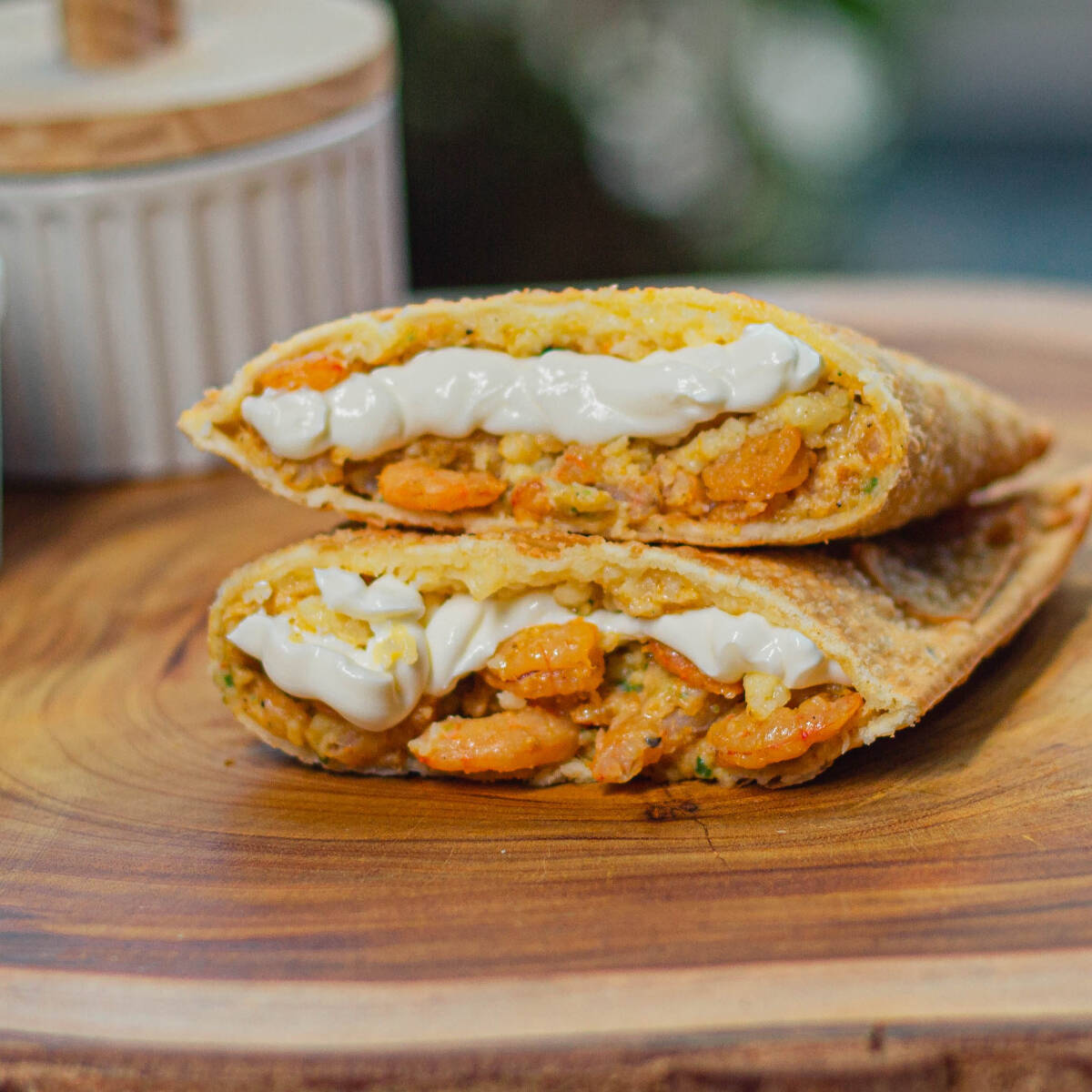 Escolha 2 tipos de recheio e turbine com 2 adicionais. É muuuuito recheio! São 25x10cm de massa crocante, sequinha, recheada de ponta a ponta, preparado e frito na hora.
