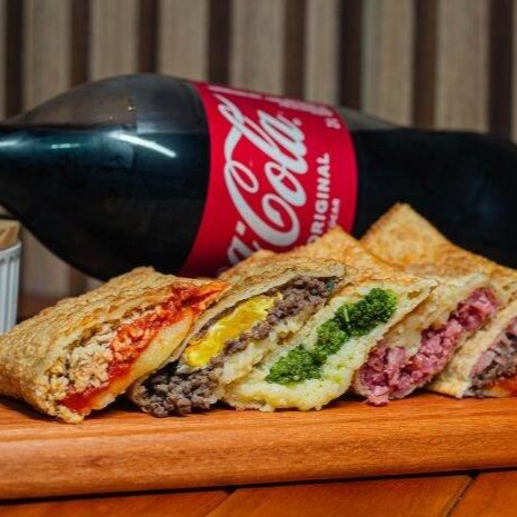Você escolhe os sabores dos pastéis e leva um refri 200ml. Massa crocante e sequinha, recheado de ponta a ponta, preparado e frito na hora! Pastel Salgado 20x10cm. Pastel Doce 20x6cm (o doce é menor que o pastel salgado).