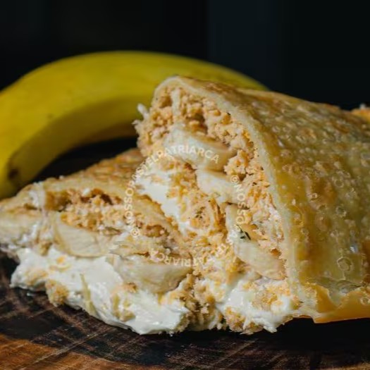 Nosso delicioso frango bem temperadinho com banana em rodelas e queijo Catupiry.