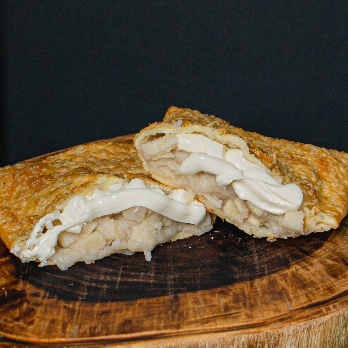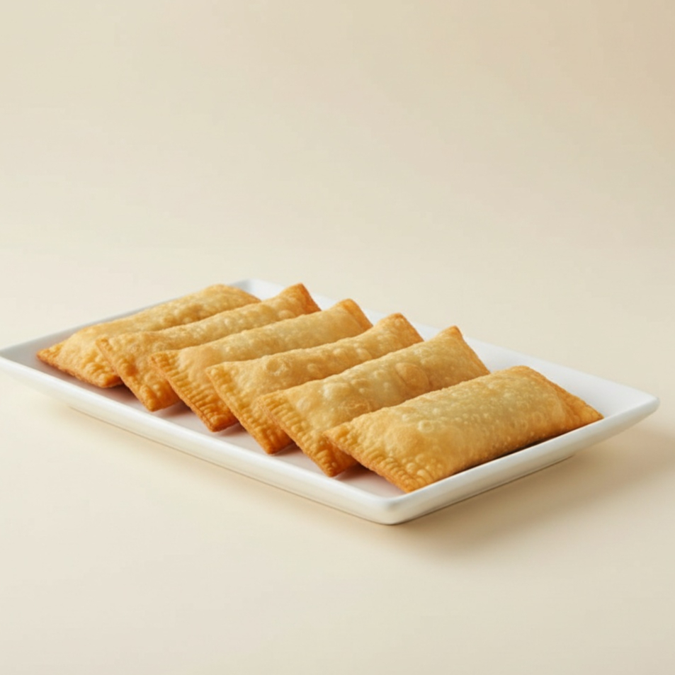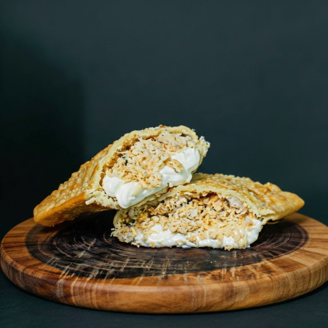 Massa crocante, recheio de ponta a ponta, preparado e frito na hora.