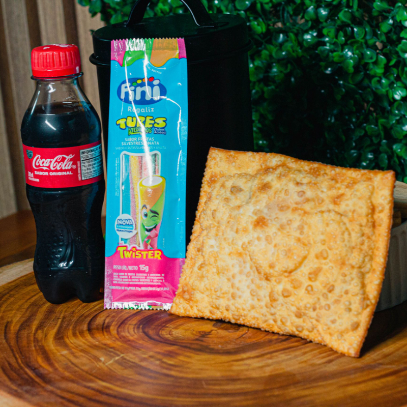 Feito sob medida para nossos pequenos apreciadores de pastéis, o Combo Kids traz um pastelzinho delicioso de 10x10cm, onde vocês escolhem o sabor. Para tornar essa experiência ainda mais especial, acompanha um refri 200ml ou suco de caixinha 200ml (Dell Vale ou Sufresh) para refrescar, e um docinho Fini para adoçar o Dia. Com essa combinação, a diversão e o sabor são garantidos.