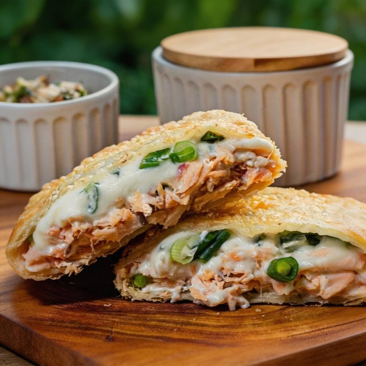 Pastel De Salmão Com Cream Cheese E Cebolinha
