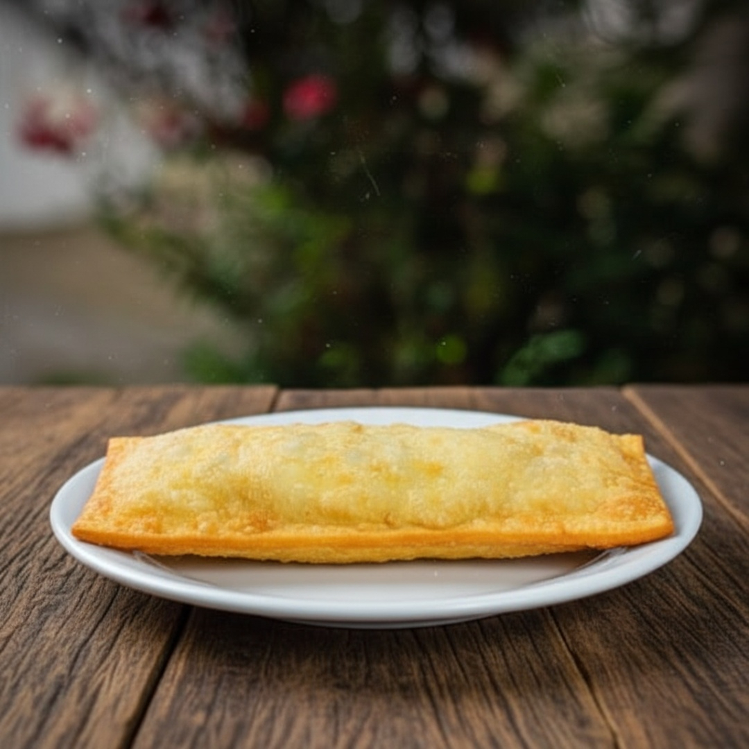 Nosso delicioso frango com queijo mussarela e molho de tomate.Massa crocante e sequinha, Pastel de 20x10cm, recheado de ponta a ponta, preparado e frito na hora.