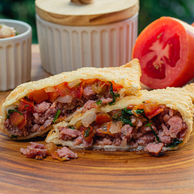 É muita economia! São 10 pastéis de massa crocante e sequinha, recheado de ponta a ponta com os recheios que você escolher na lista.