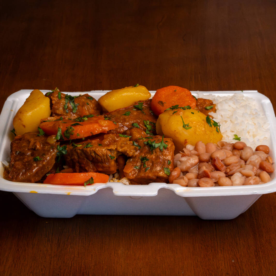 Picadinho c/ Batatas e Cenoura com Arroz soltinho, Feijão e Farofa.
