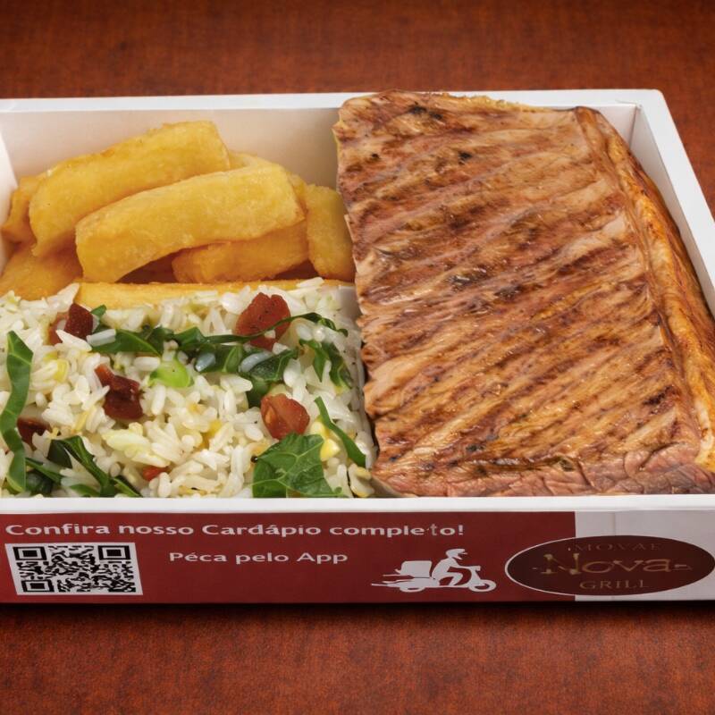 1 Bife de Chorizo , Arroz de sua escolha (carreteiro, biro-biro) e Mandioca frita