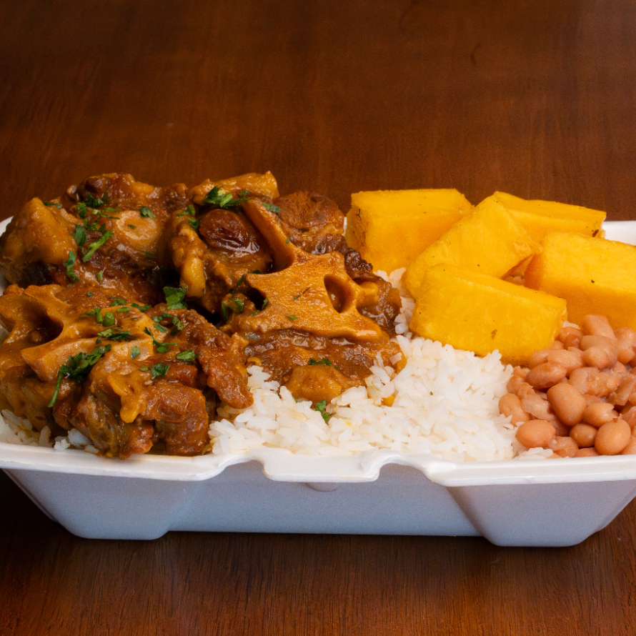 Rabada c/ Polenta frita, Arroz soltinho e Feijão bem temperado (800g)