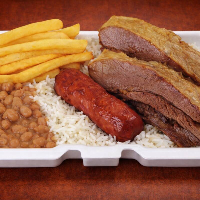 Costela e linguiça, Arroz soltinho, Feijão bem temperado, Fritas (800g)