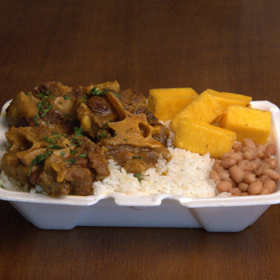 Rabada c/ Polenta frita, Arroz soltinho e Feijão bem temperado (800g)