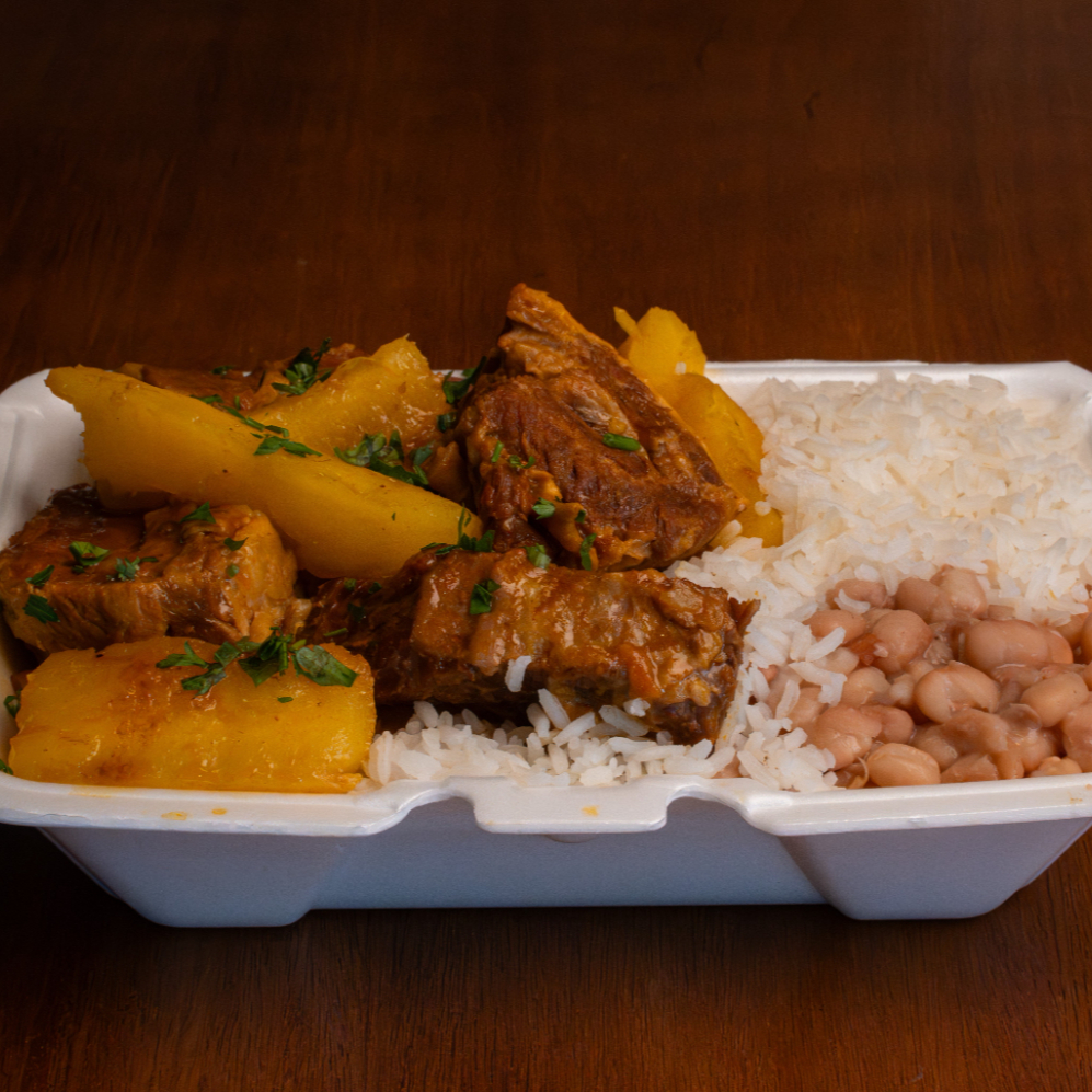 Costela cozida c/ Mandioca, Arroz soltinho e Feijão bem temperado (800g)