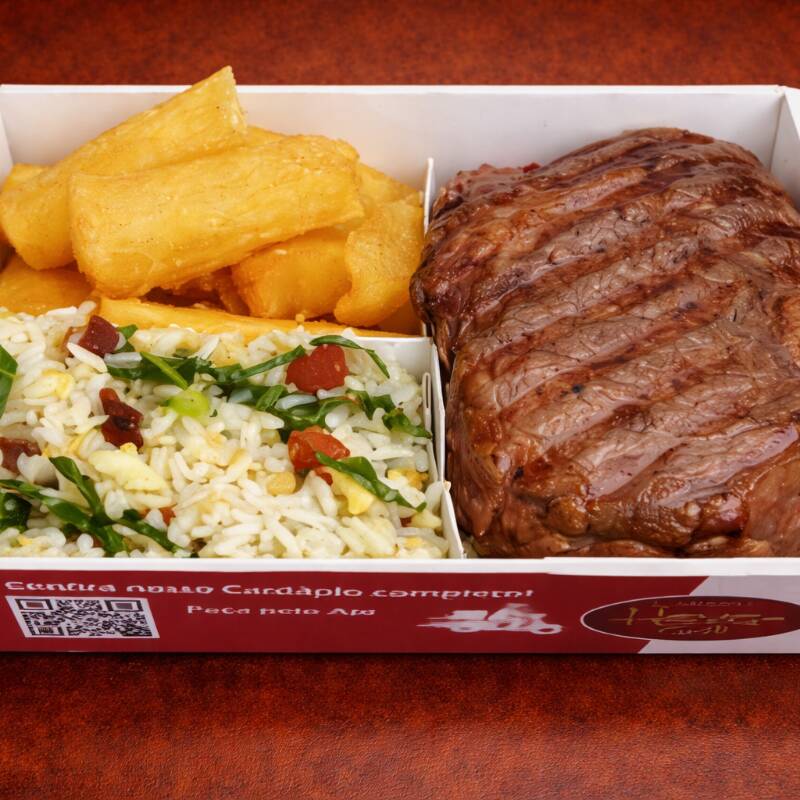 1 Bife Ancho , Arroz de sua escolha (Carreteiro, Biro-biro) e Mandioca frita