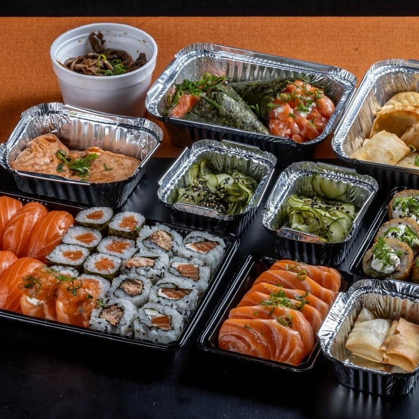 Delicioso rodízio acompanha :1 dupla de djo de salmão, 8 sashimis de salmão, 2 temakis 100 gr cada, 6 un hot rolls, 8 niguiris de salmão, 4 uramaki grelhado cheese, 4 ura crú cheese, 8 und hossomaki salmão, 120 gr de salmão grelhado, 4 un de guioza bovina, 150 gr de shimeji na manteiga, 4 un harumaki de queijo, 2 un harumaki doce, 2 sunomono.