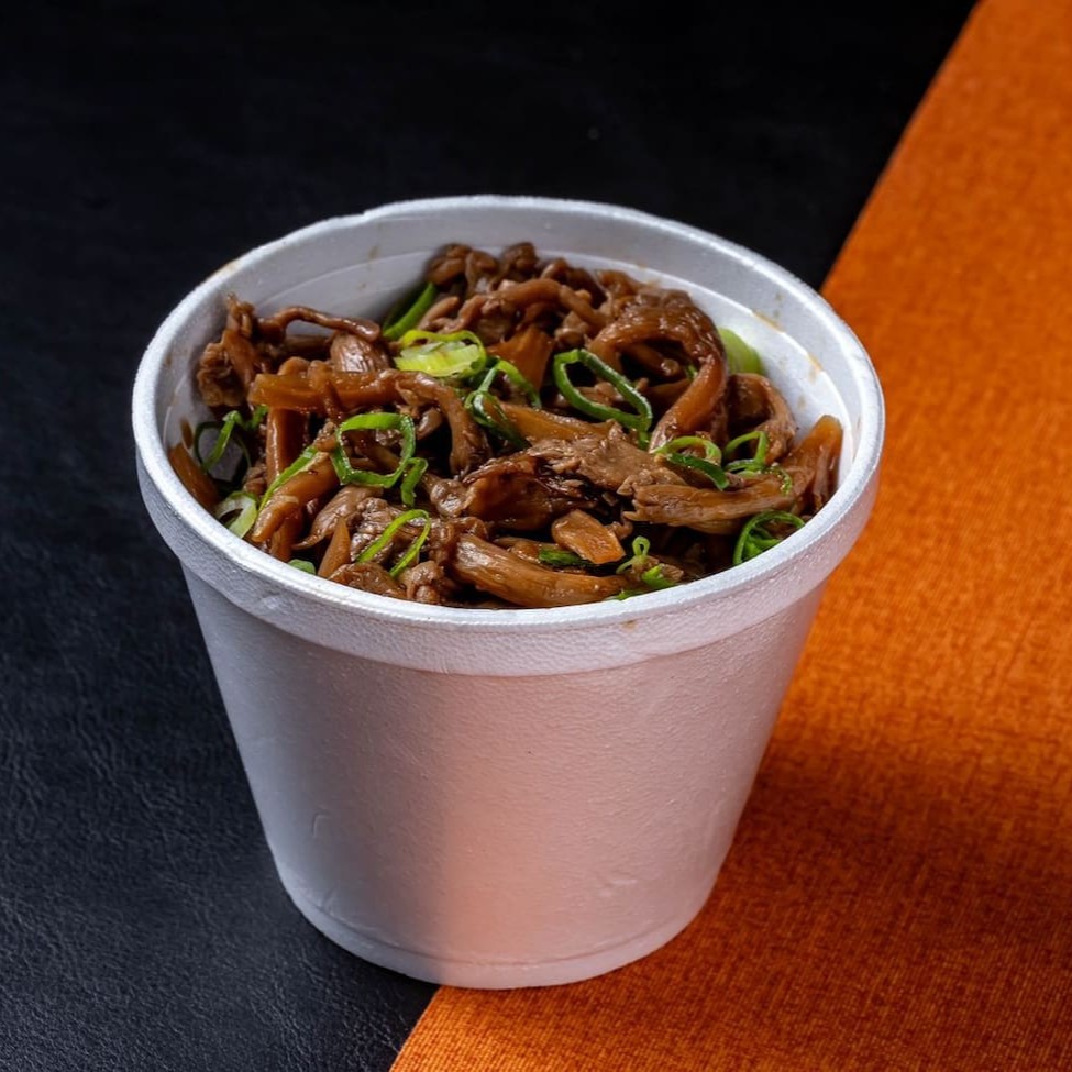 Cogumelos salteados na manteiga e grelhado na chapa com cebolinha ao molho shoyu da casa.