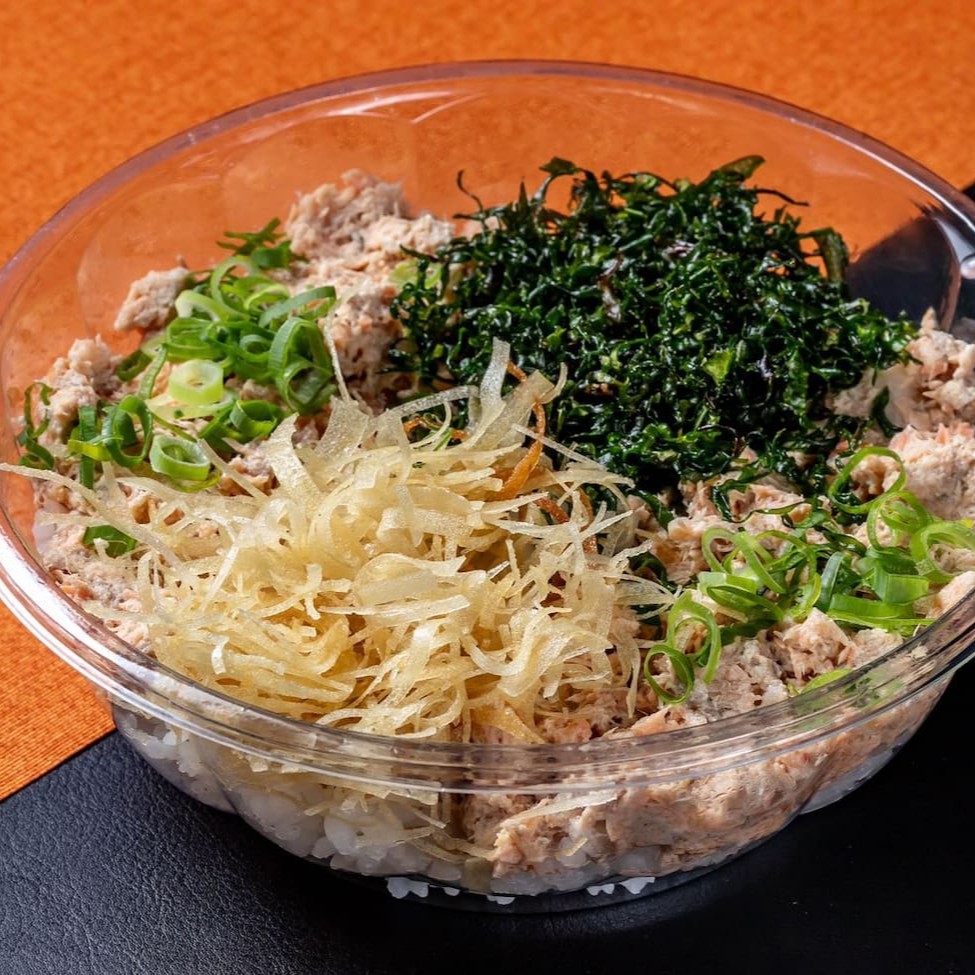Tradicional kone enrolado com alga marinha + shari + recheio de salmão cru + cebolinha + cheese.