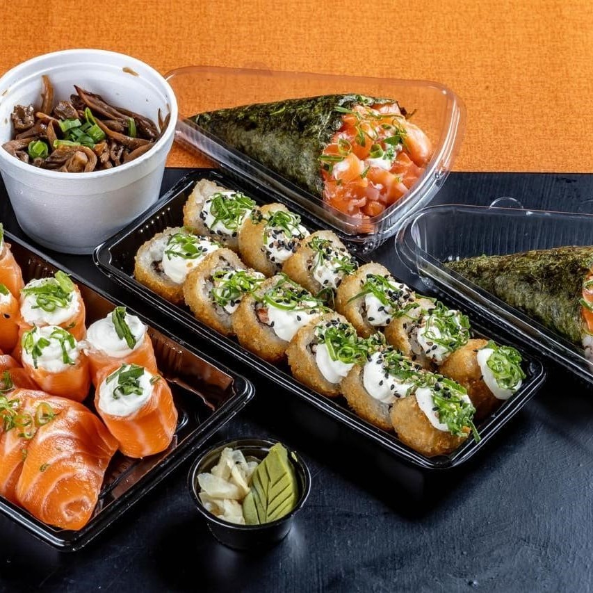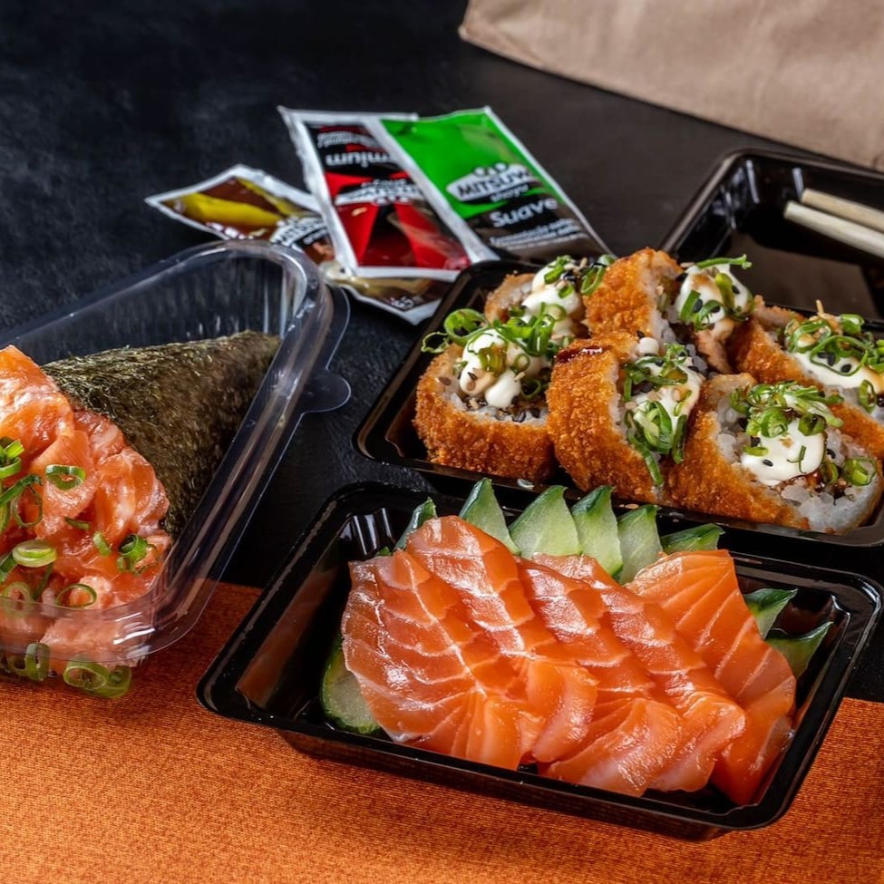 5 sashimi fresco, 4 niguiri skin, 4 uramaki cru cheese, 4 uramaki grelhado, 6 hot rolls.