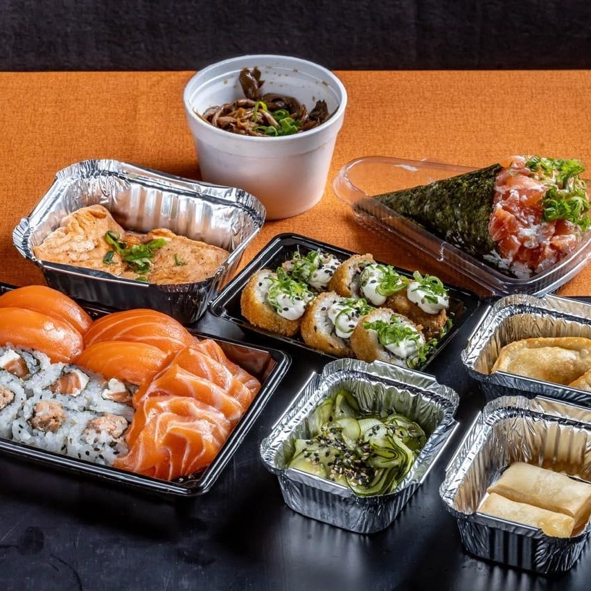 Delicioso rodízio acompanha : 5 sashimis de salmão, 1 temaki 120 gr, 6 un hot rolls, 4 niguiris de salmão, 4 ura grelhado cheese, 4 ura crú cheese, 90 gr de salmão grelhado, 2 un de guioza bovina, 100 gr de shimeji na manteiga, 2 un harumaki de queijo, 1 sunomono.