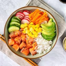 Salmão em cubos Tilapia Crem Ches Tomate Cereja Cenoura ralada Cebola roxa Cebolinha