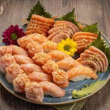 5 sashimi de salmão 5 niguiri de salmão 5 uramaki de salmão 5 uramaki skin couve 5 kapamaki 5 shakemaki 5 hot couve crispy 5 hot holl