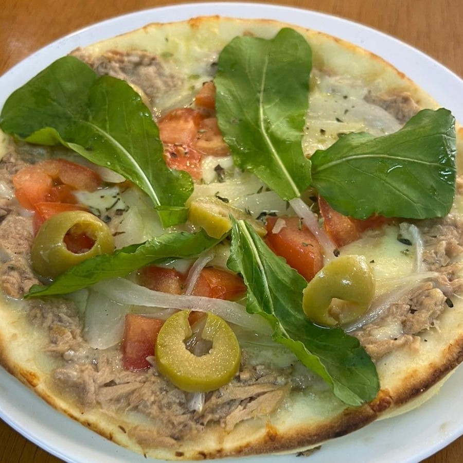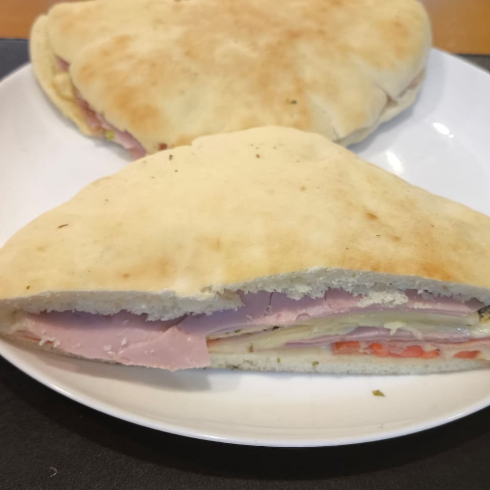 Camadas generosas de queijo derretido e presunto, combinadas com tomate fresco e um toque de orégano. Prensado no pão sírio até ficar dourado e crocante.