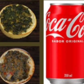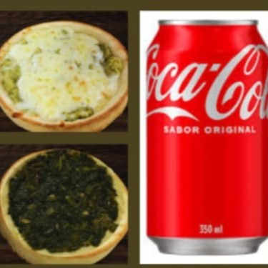 Esfiha de abobrinha com mussarela derretida + esfiha de espinafre temperado, ambas com massa artesanal. Acompanha Coca gelada!