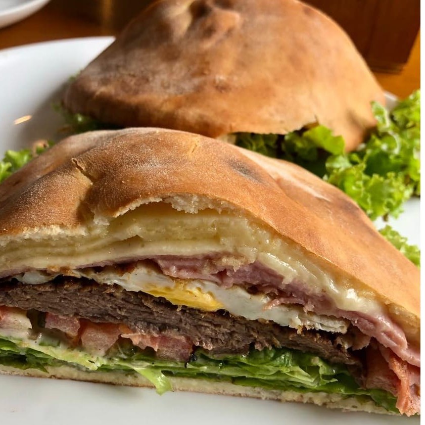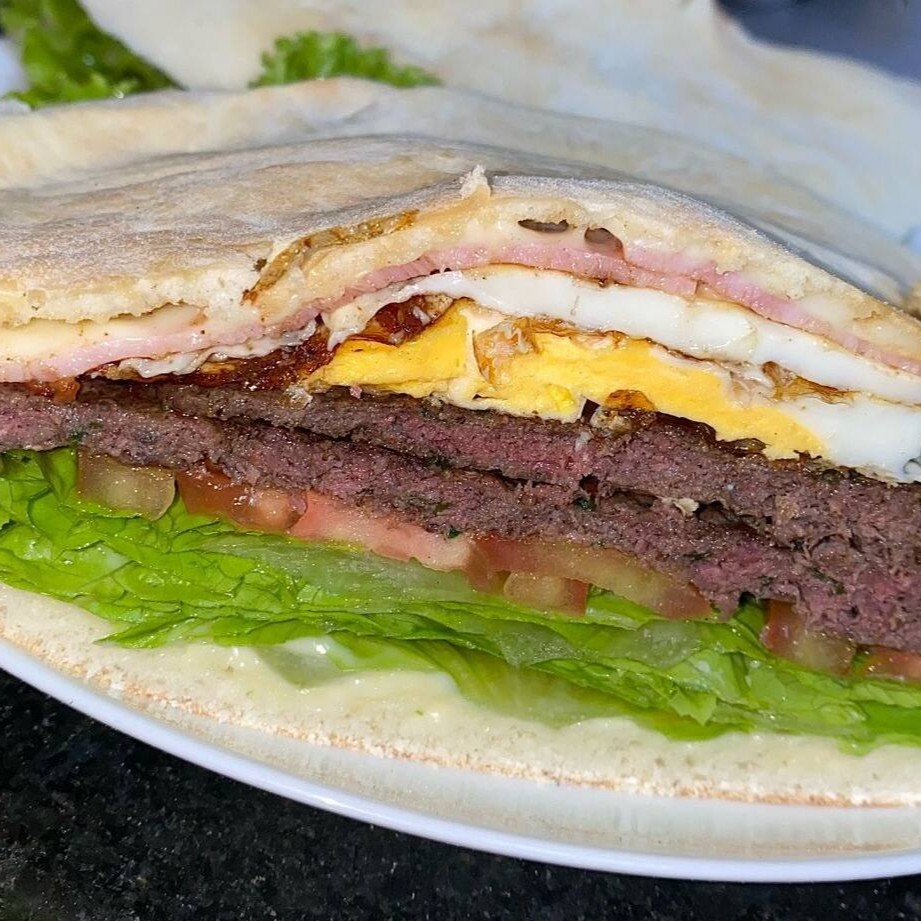 Camadas generosas de kafta em formato de hambúrguer, presunto e queijo derretido, combinadas com ovo frito no ponto, alface fresca, tomate e um toque de maionese da casa. Prensado no pão sírio até ficar dourado e crocante.