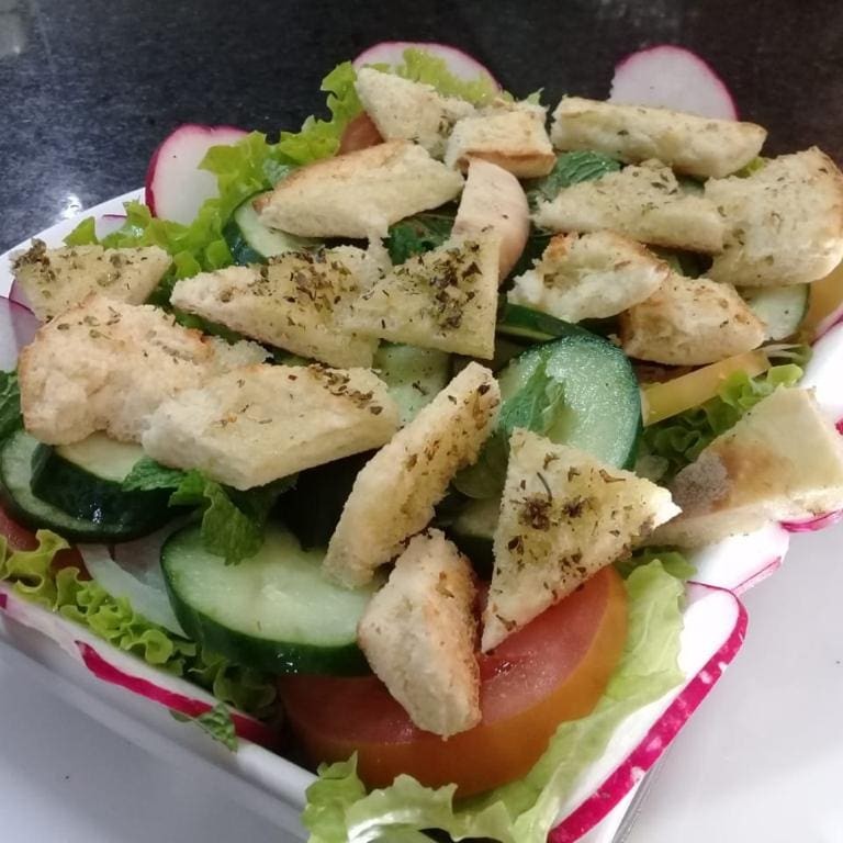 Falafel frito, combinado com cebola fresca, tomate, pepino em conserva, salsinha e hortelã. Finalizado com o cremoso molho Taranto e servido no pão sírio prensado na chapa, crocante por fora e macio por dentro.