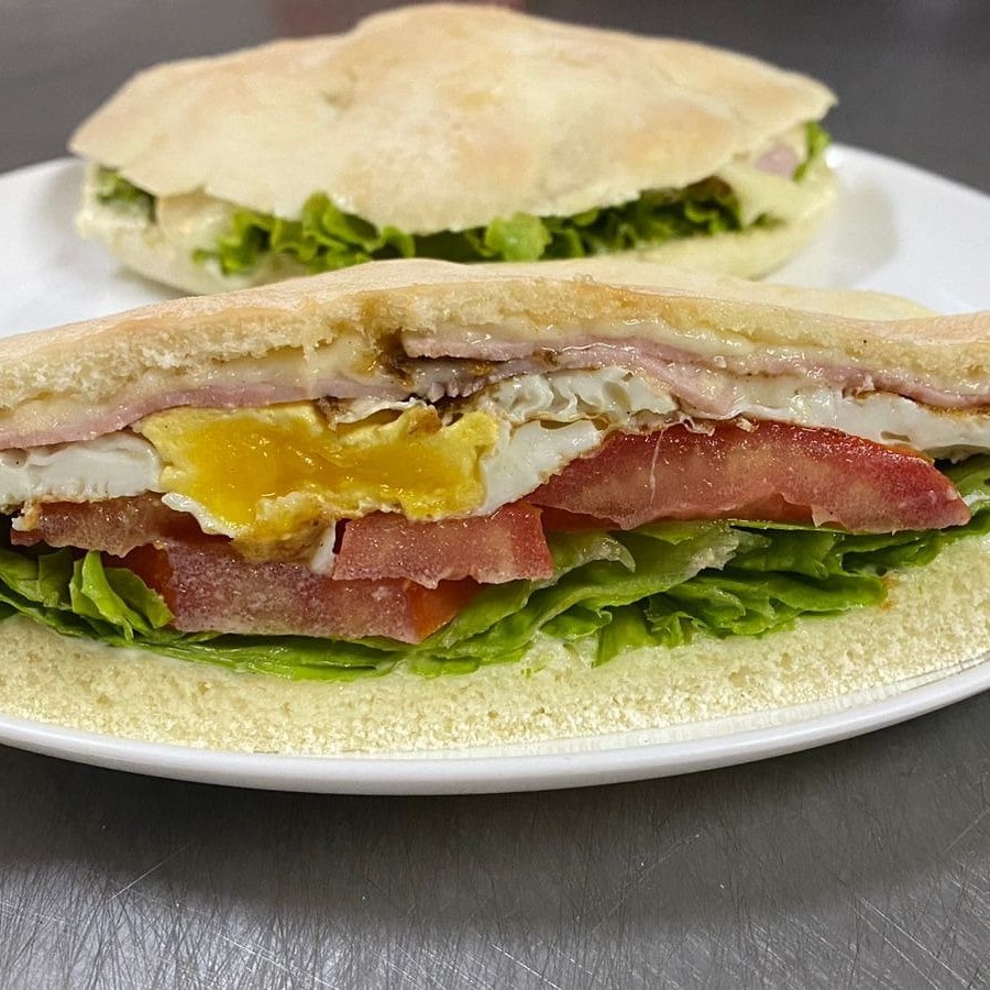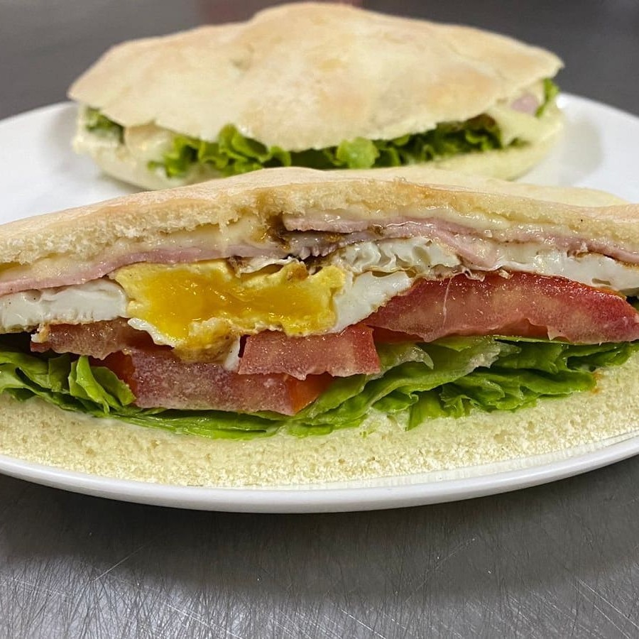 Camadas generosas de presunto e queijo derretido, combinados com alface fresca, tomate, ovo frito no ponto e um toque de maionese cremosa. Prensado no pão sírio até ficar dourado e crocante.