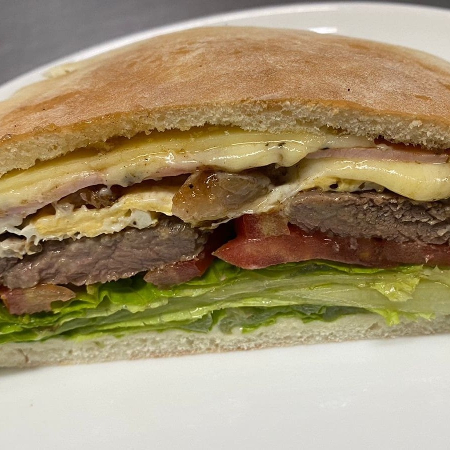 Camadas generosas de filé mignon suculento e Catupiry cremoso, combinadas com bacon crocante, presunto, queijo derretido, ovo, alface fresca, tomate e um toque de maionese. Prensado no pão sírio até ficar dourado e crocante.