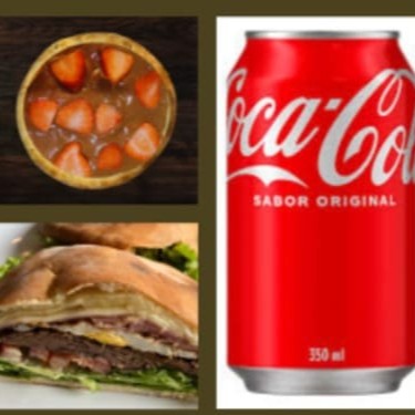 O clássico Beirute de Filé Mignon (pão sírio tostadinho, filé suculento, queijo, cebola caramelizada, tomate fresco, picles crocantes e um toque de hortelã) + Esfiha de Morangos frescos com Nutella + Coca-Cola gelada para fechar com chave de ouro!