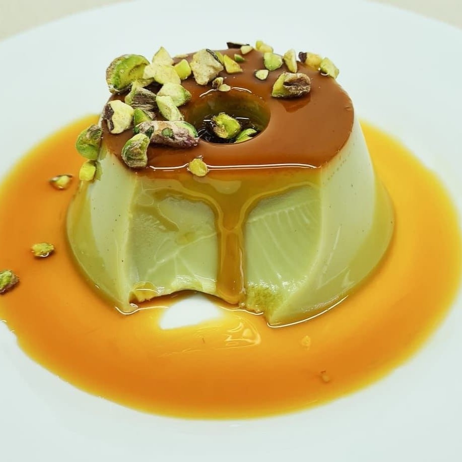 Cremoso pudim à base de pistache (135 gr) assado em banho-maria para uma textura macia e finalizado com calda de açúcar queimado da marca sópudimoficial. Maravilhoso!! (Não inclui os pistaches da foto). Vai em uma embalagem muito bem lacrada para sua segurança.