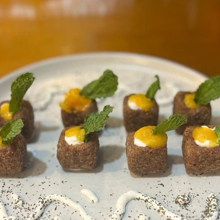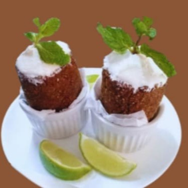 Uma delícia crocante e cremosa! 6 unidades de Kibe em formato de copinho, recheado com coalhada seca suave e finalizado com uma calda doce de damasco. Sabores que se completam perfeitamente!