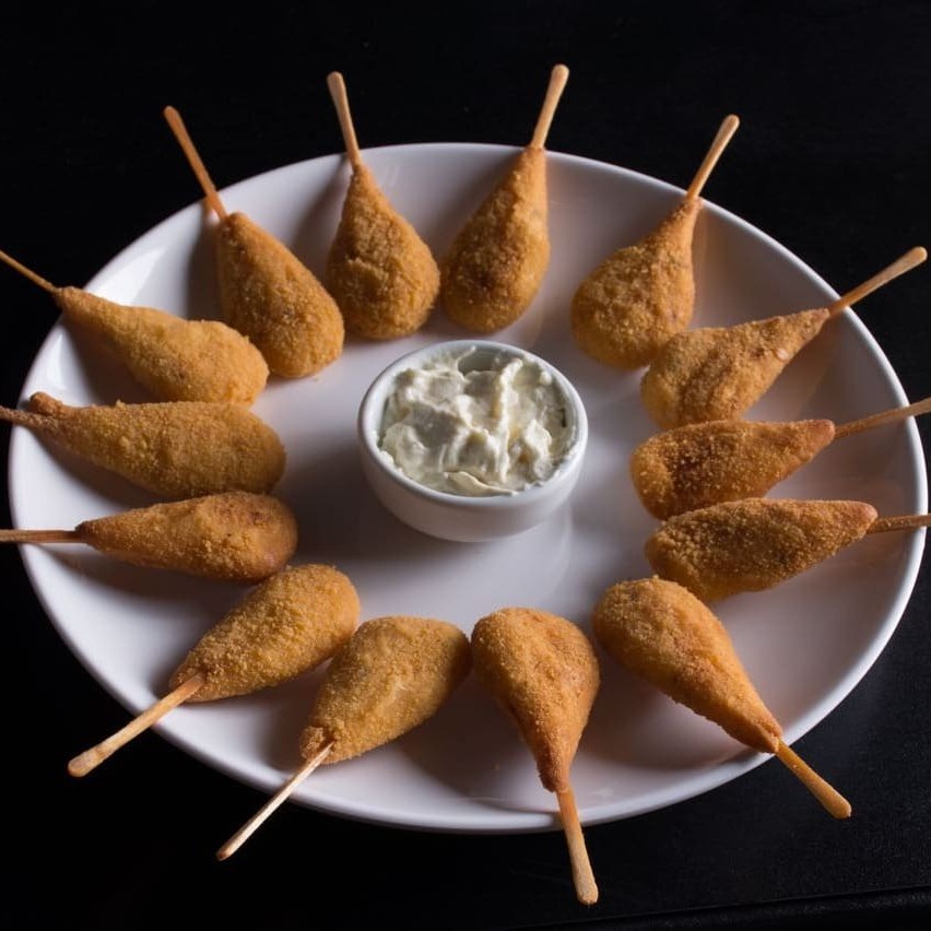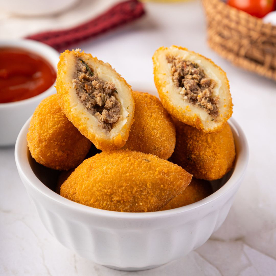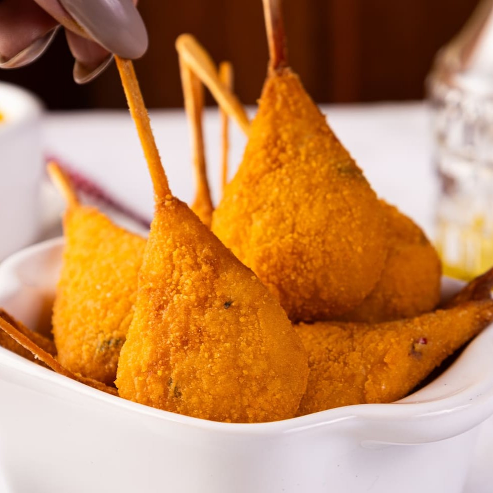 10 coxinhas, 10 bolinhas de queijo, 10 tubinhos de presunto e queijo